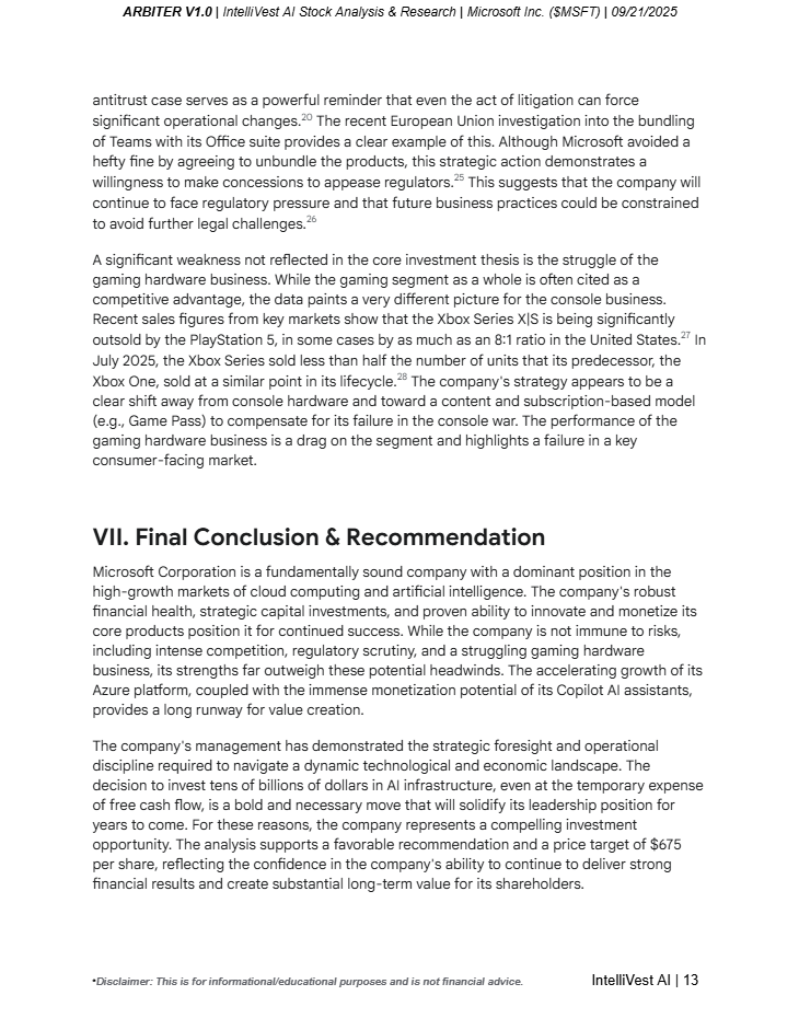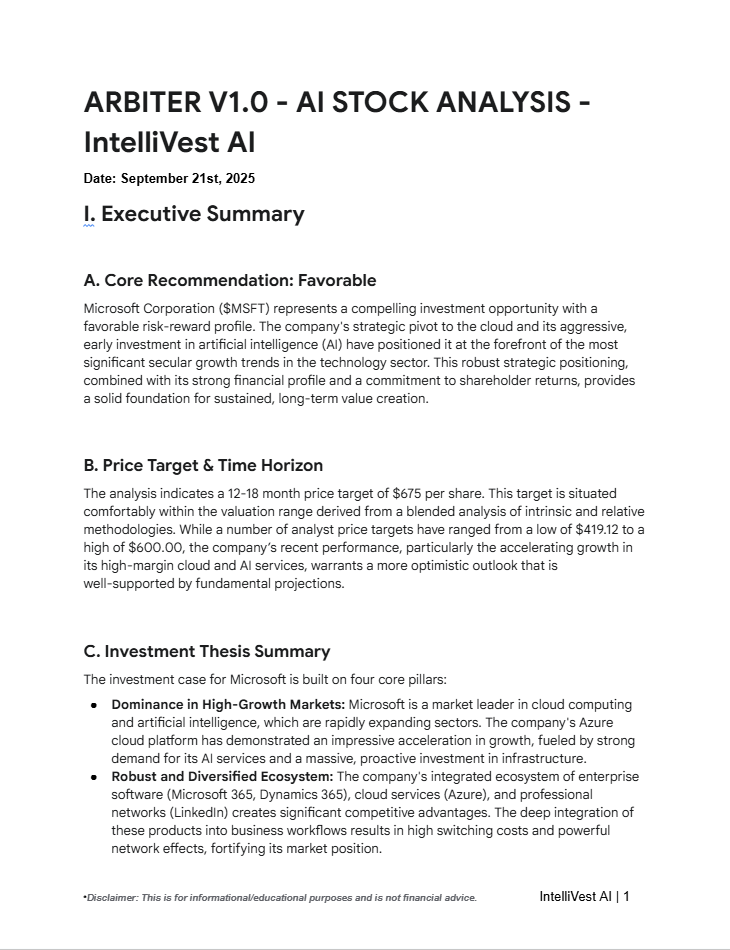 ARBITER X MICROSOFT - AI STOCK ANALYSIS
